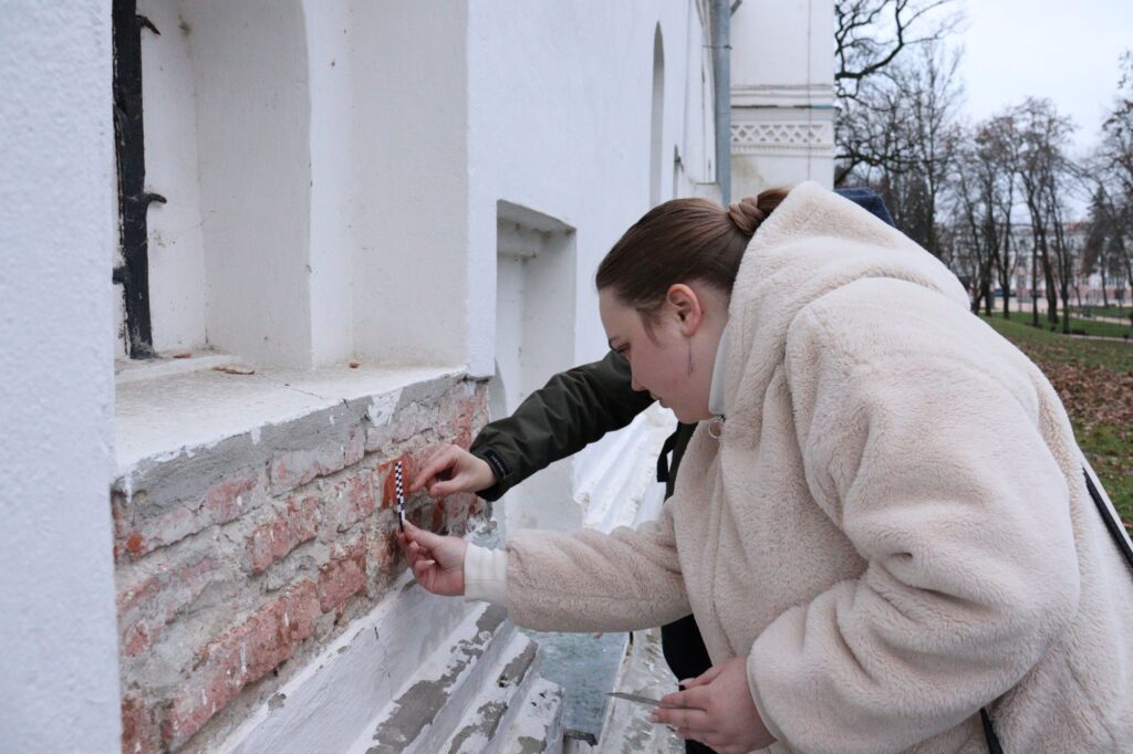 Студенти здійснили візуальні обстеження елементів кладки, а також оглянули ділянки, де збереглися фрагменти кладки різних періодів. У ході заняття проведено вимірювання геометричних характеристик цегляної кладки, включно з розмірами цегли, товщиною швів і товщиною стін, із застосуванням безконтактних методів. У процесі роботи суворо дотримувалися вимог з охорони пам’яток архітектури, не допускаючи будь-якого втручання у конструкції споруди.