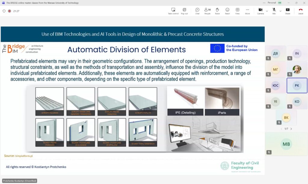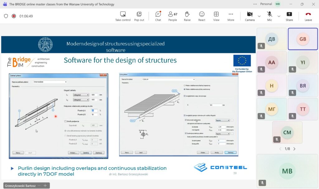 11 та 15 грудня 2025 року викладачі та здобувачі кафедри технологій зварювання та будівництва мали змогу взяти участь у спеціалізованих майстеркласах від викладачів Варшавського політехнічного університету (Польща) та КНУБА (Україна) – «The BRIDGE online master classes from the Warsaw University of Technology».
