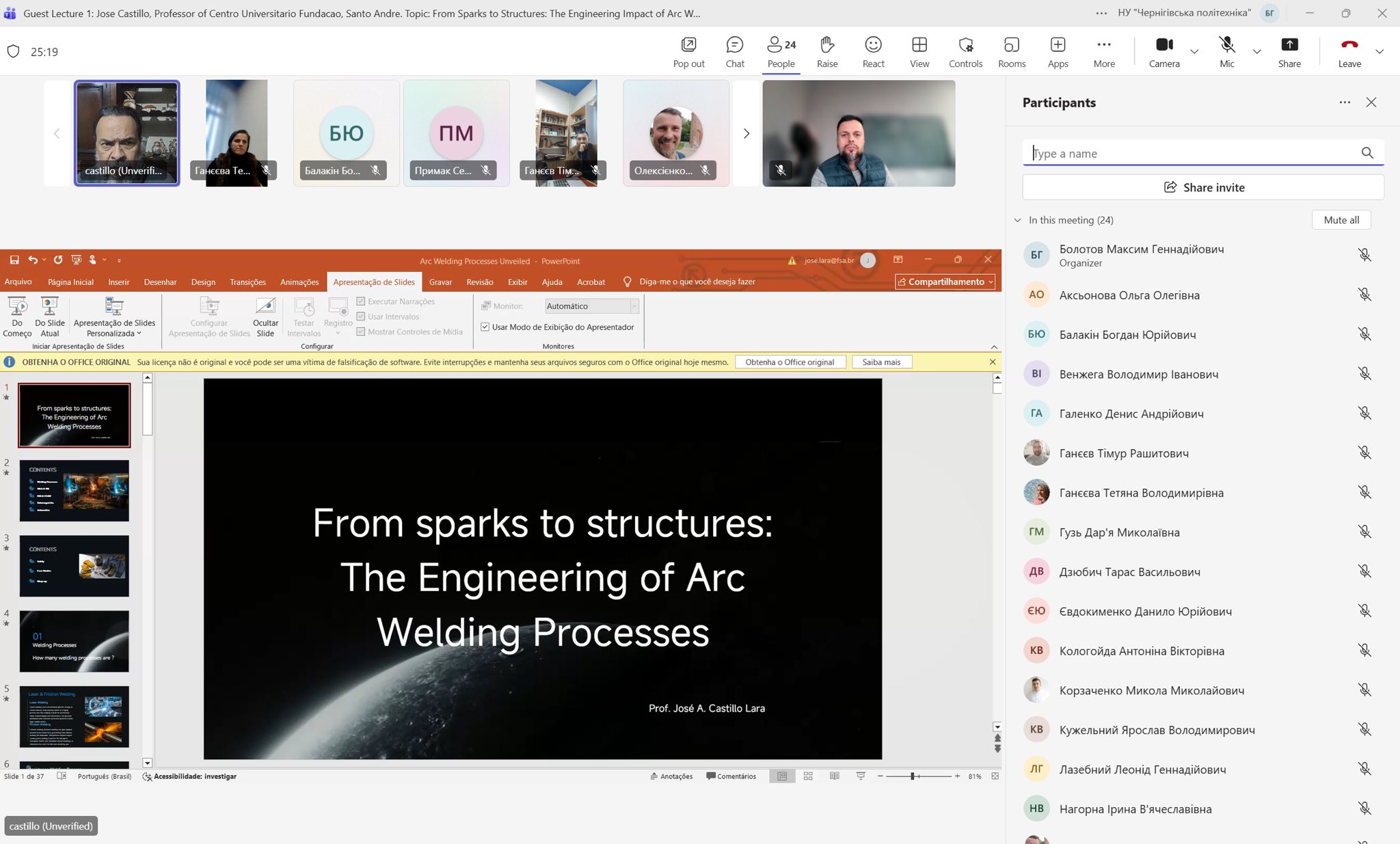 03 листопада 2025 року на кафедрі технологій зварювання та будівництва в онлайн форматі відбулася відкрита лекція доктора технічних наук Джозе Кастільо/Jose Castillo, професора Centro Universitario Fundacao, San Andre, San Paulo (Brazil) Долучилися до лекції здобувачі та НПП спеціальностей (освітніх програм) Навчально-наукового інституту інженерії, виробництва та будівництва: G19 Будівництво та цивільна ...